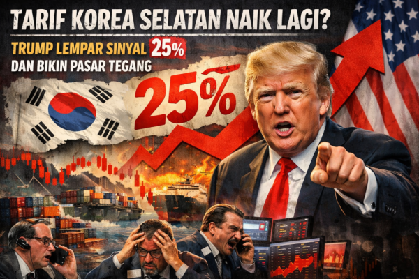 Solid Gold Berjangka Semarang | Presiden AS Donald Trump mengatakan pada Senin (26 Januari 2026) bahwa tarif impor atas barang-barang dari Korea Selatan akan dinaikkan menjadi 25% dari sebelumnya 15%. Ia menyampaikan rencana itu lewat unggahan media sosial, dengan daftar sektor yang disebut cukup luas—mulai dari mobil, kayu/lumber, hingga obat-obatan, plus “tarif timbal balik lainnya”….